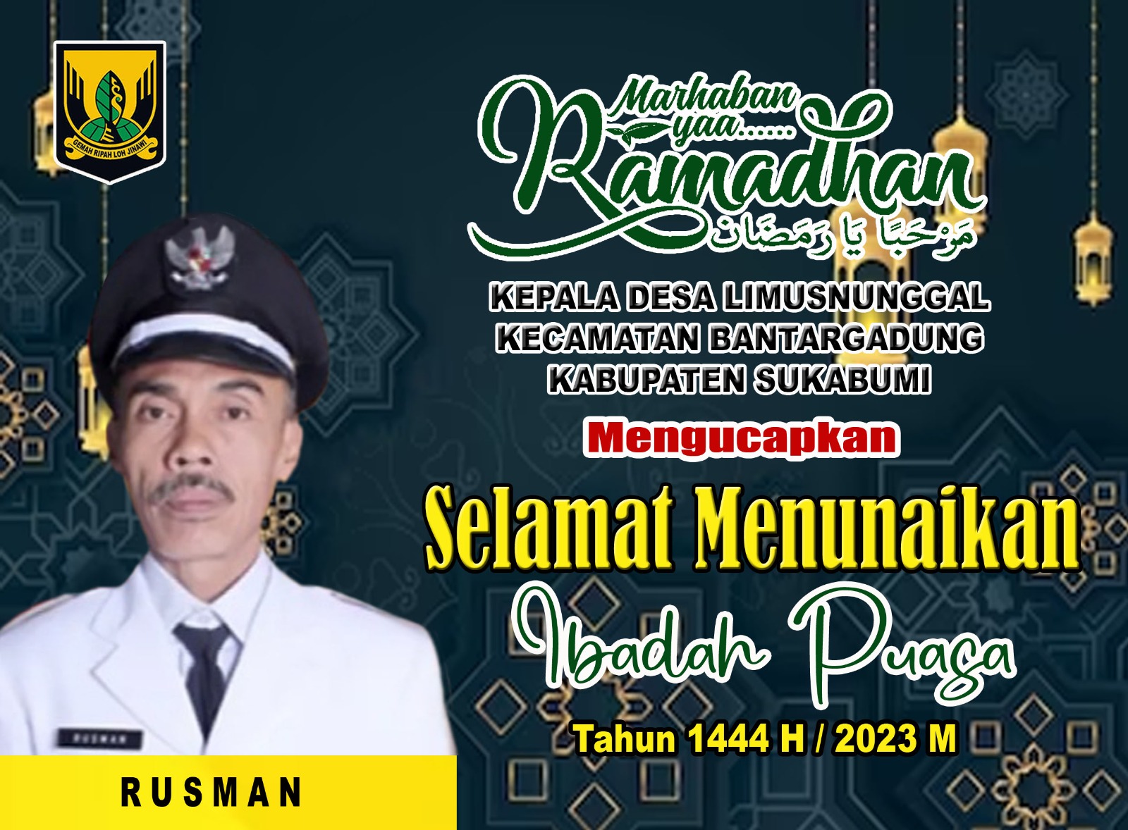 "Kades Limus Nunggal Kecamatan Palabuhanratu Kabupaten Sukabumi mengucapkan selamat menunaikan ibadah puasa"