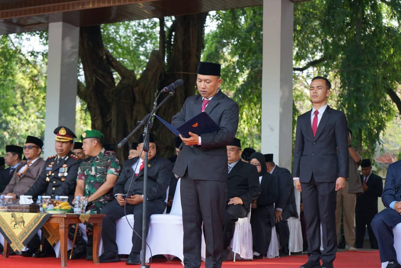 Usai memimpin upacara tingkat Kabupaten Sukabumi, Wakil Bupati H Andreas bersama jajaran Forkopimda secara virtual mengikuti upacara nasional yang dipimpin langsung oleh Presiden Republik Indonesia, Prabowo Subianto di Pelataran Gedung Pancasila Jakarta.
